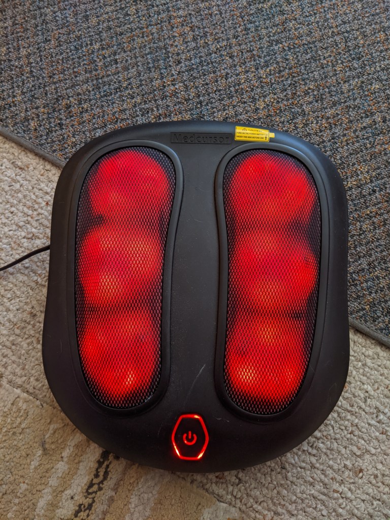 - foot massager. It has 6 massage heads with 18 rotating nodes that are designed to produce acupressure that targets the best pressure points of your feet.